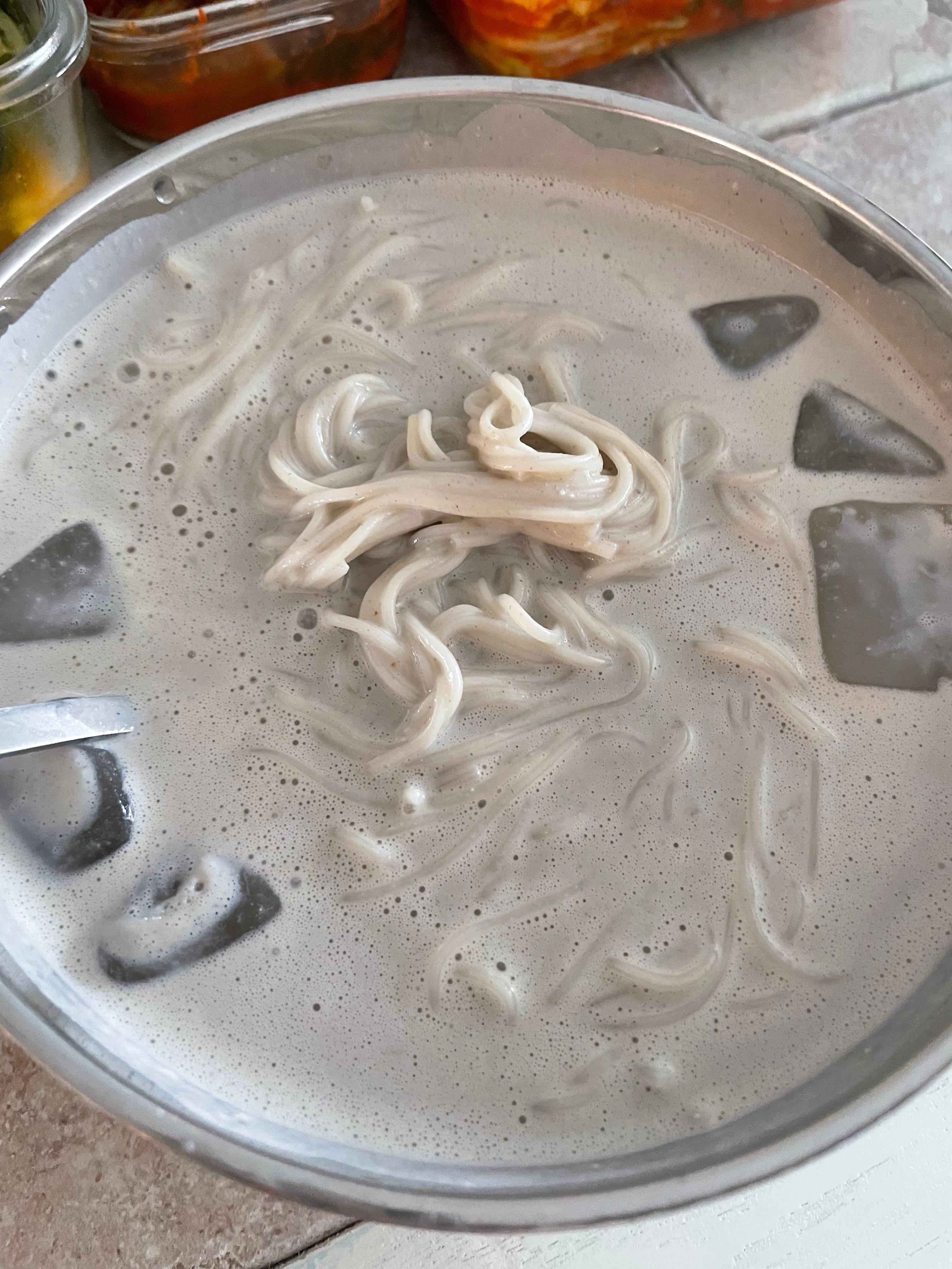 저는 걸쭉한 콩국물을 좋아하는 취향이므로~ 최대한 꼬소 걸쭉하게 먹고 싶어서 맹물보다는 서리태콩물로 했어요.